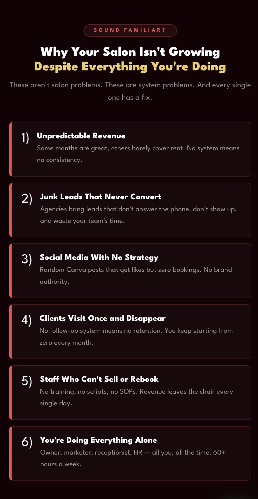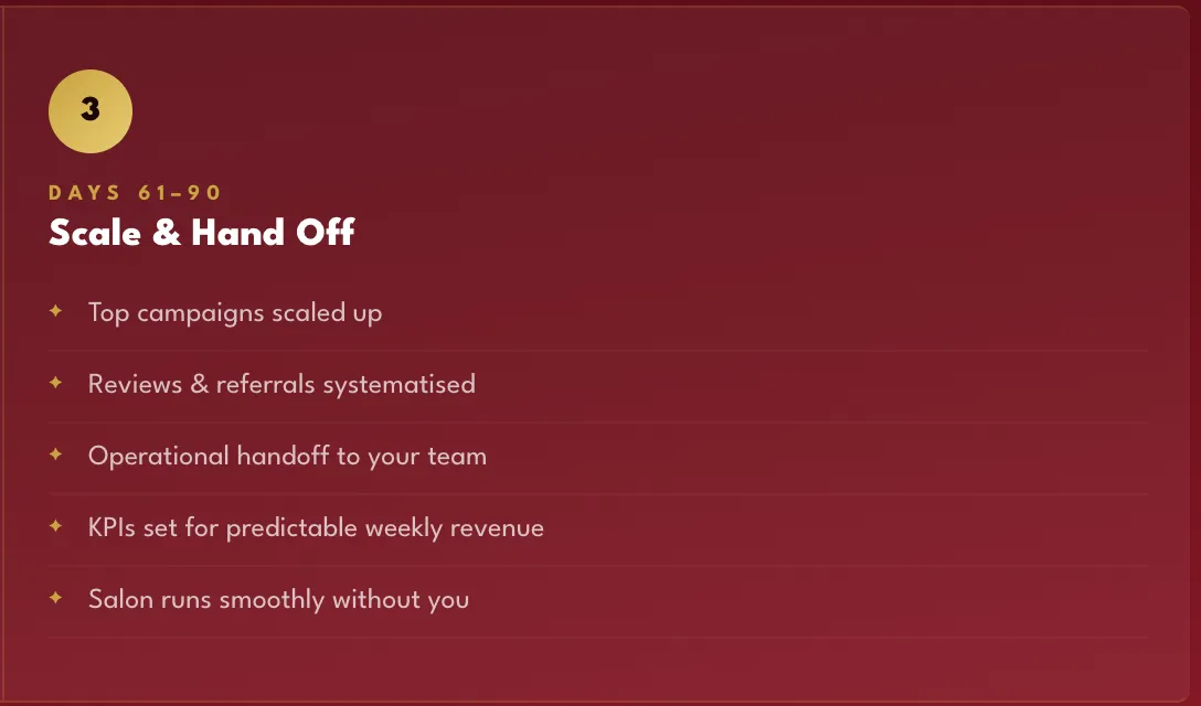 3. Full Partnership: We build and run the entire MCR Engine for your salon — you focus on operations, we handle growth.