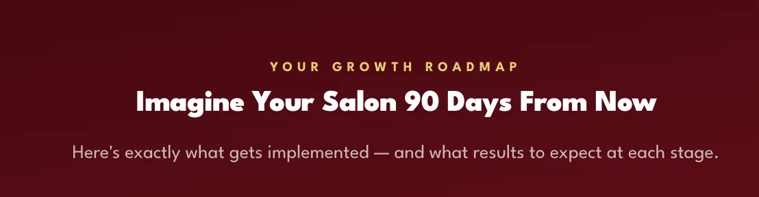 It's 100% a real strategy session. We'll spend 45–60 minutes diagnosing your salon's revenue leaks, marketing gaps, and growth roadblocks. You'll walk away with a clear action plan whether you work with us or not. If we see a fit and you want our help executing, we'll talk about it at the end. But there's no pitch deck, no pressure — just pure strategy.